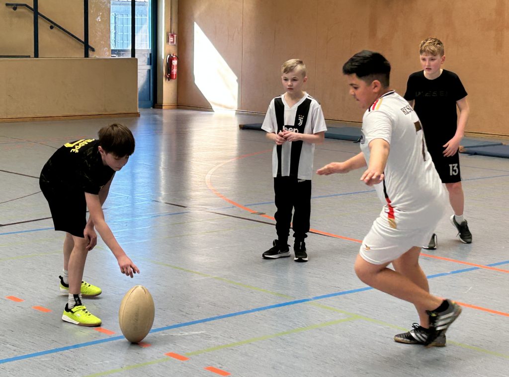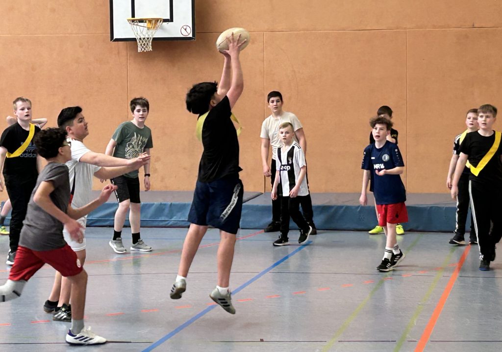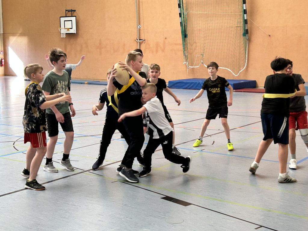 Besonders beliebt war die Station in der Sporthalle, wo die Schüler unter Anleitung von Lehrer Marc Eisele in die actionreiche Sportart Rugby hineinschnuppern konnten.