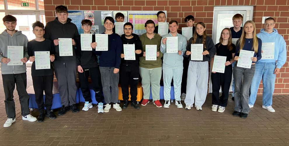 … an die 16 Schülerinnen und Schüler der 9. Jahrgangsstufe, die den „Preliminary English Test“ (PET) des renommierten Cambridge Instituts mit großem Erfolg bestanden haben!