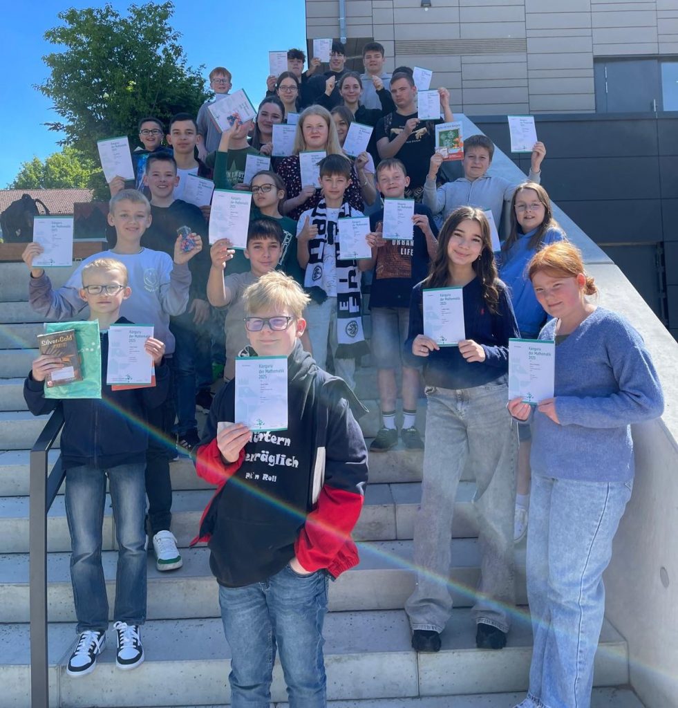 33 Schülerinnen und Schüler der Jahrgänge 5 bis 9 haben am 20. März am Känguru-Wettbewerb der Mathematik teilgenommen und mit viel Knobelfreude tolle Ergebnisse erzielt. Besonders herausragend war ein Schüler aus Jahrgang 5, der mit dem weitesten “Känguru-Sprung” ein T-Shirt gewann und zusätzlich einen 3. Preis erhielt. Alle Teilnehmenden wurden mit Urkunden, einem Knobelspiel und einer Aufgabenbroschüre ausgezeichnet. Herzlichen Glückwunsch!