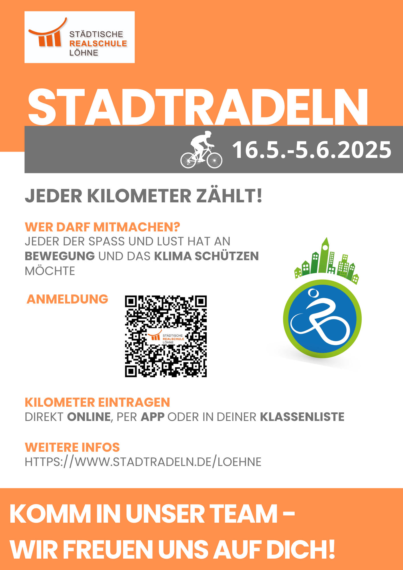 auch in diesem Jahr bilden wir wieder ein Team für das jährliche Stadtradeln vom 16.05.-05.06.2025. Alle Interessierten können sich hier anmelden, um unser Team mit möglichst vielen Kilometern zu unterstützen.